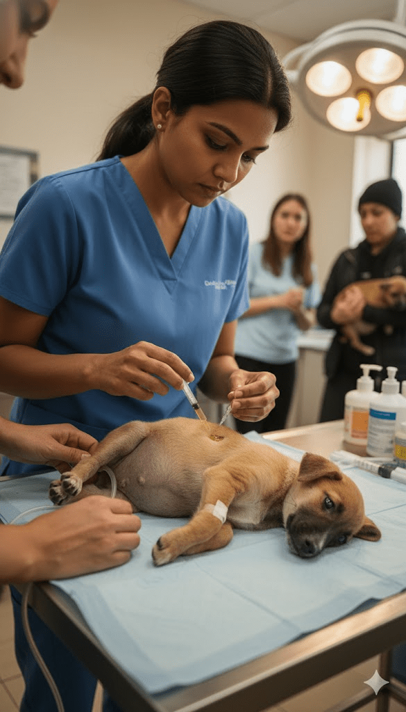 Upon closer examination, the grim reality became even more apparent. The puppy, whom we affectionately named Hope in a desperate plea to the universe, was severely emaciated beneath his bloated abdomen, a clear sign of a massive parasitic infestation. His eyes, though clouded with pain, held a flicker of resilience that spurred us onward. The veterinary team, led by Dr. Anya Sharma, immediately began diagnostic tests. The initial prognosis was grim: a severe case of ascites, likely caused by protein deficiency and a rampant worm burden that was slowly consuming him from within. The challenge was multifaceted – how to drain the fluid, eliminate the parasites, and then, most crucially, nourish a body that had been starved for so long without overwhelming his fragile system. The first few hours were a whirlwind of activity, administering intravenous fluids, carefully chosen anti-parasitic medication, and gentle warmth. Every tick of the clock felt like an eternity, every breath Hope took a small victory.