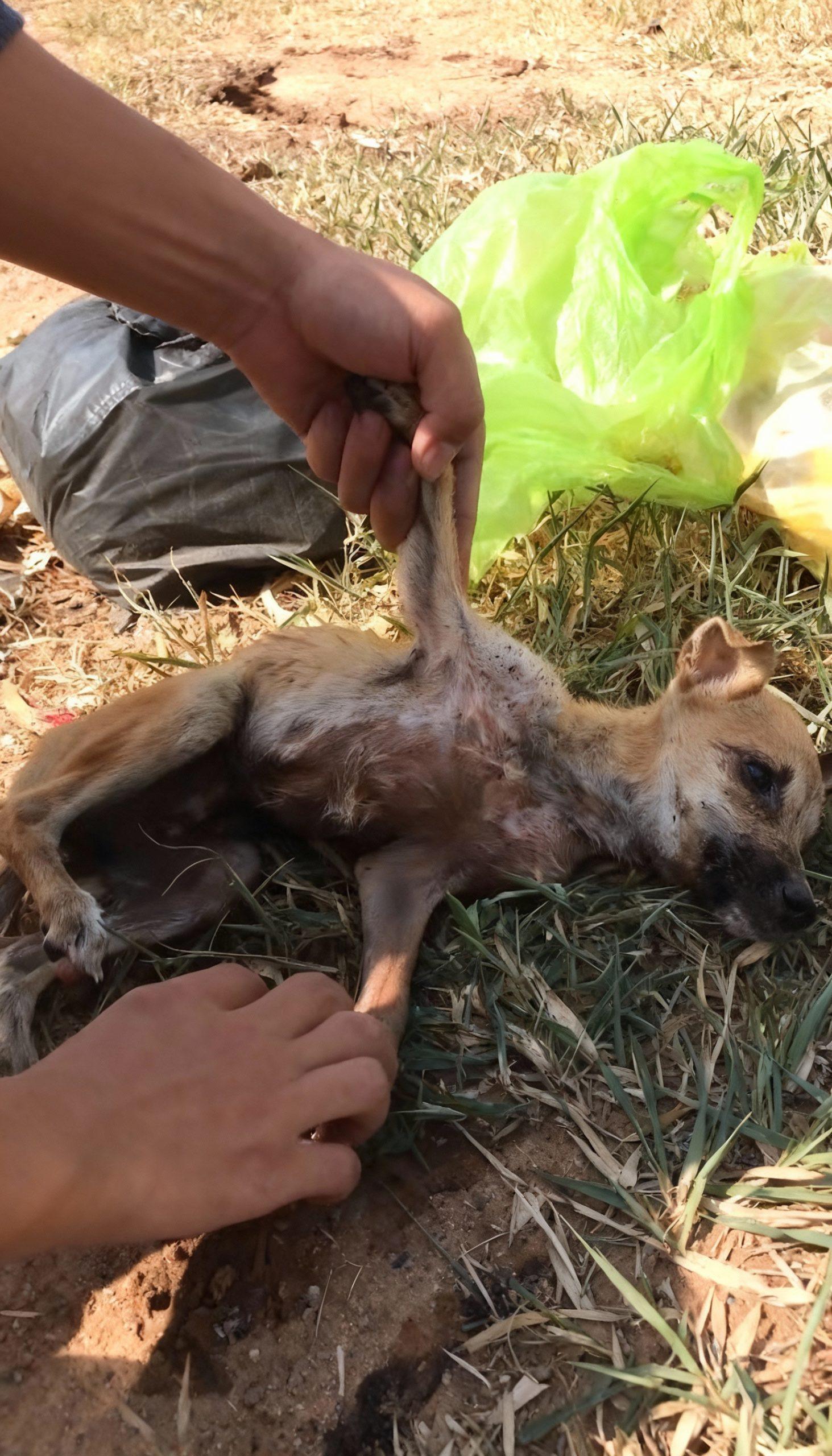 The scene was grim, a stark tableau of neglect and suffering that would haunt even the most hardened observer. Lying listless amidst discarded refuse and parched earth, a small, emaciated puppy clung precariously to life. Its ribs protruded sharply, a testament to prolonged starvation, and its fur was matted and sparse, revealing patches of raw skin afflicted by parasites. One eye was crusted shut, the other held a vacant, unfocused stare, devoid of the sparkle and curiosity typical of a young animal. A faint, almost imperceptible tremor ran through its fragile body, a silent plea for an end to its misery or a chance at survival, whichever came first. It was a sight that spoke volumes of abandonment, of a life deemed worthless, left to fade away unnoticed. The air hung heavy with a sense of despair, making it difficult to imagine any hope for this tiny creature.