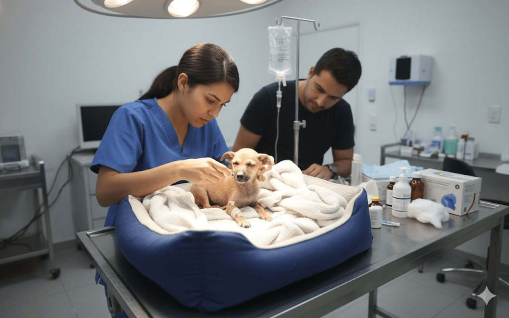 Upon arrival, the veterinary team was cautious. The pup, whom they named “Hope,” was severely dehydrated, anemic, and infested with fleas and ticks. Its body temperature was dangerously low, and its immune system was virtually nonexistent. The initial prognosis was guarded, with the vet estimating a less than 20% chance of survival. Despite the grim outlook, the team rallied, providing fluids, warmth, and the first taste of nutrient-rich food Hope had likely ever known. Each small victory – a wag of the tail, a stronger breath – was met with hushed celebrations.
