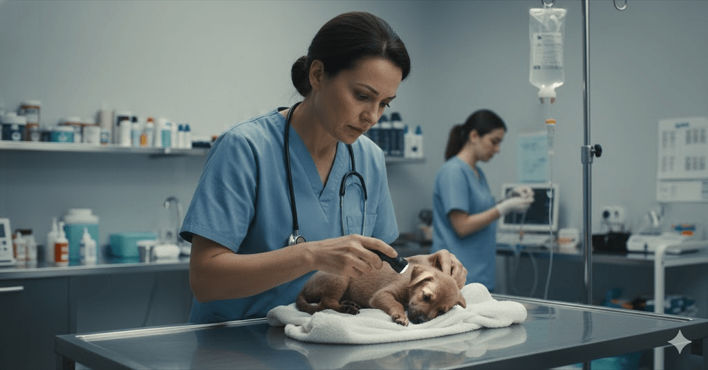 The next few days were a blur of critical care. The puppy, named “Hope” by the clinic staff, was placed in an incubator, given IV fluids, and administered antibiotics. Alex visited daily, spending hours talking softly to the unresponsive pup, willing it to hold on. Just when hope seemed to wane, a flicker of movement – a tiny tail wag, barely perceptible – brought a gasp of relief from Alex and Dr. Petrova. Hope was fighting back.