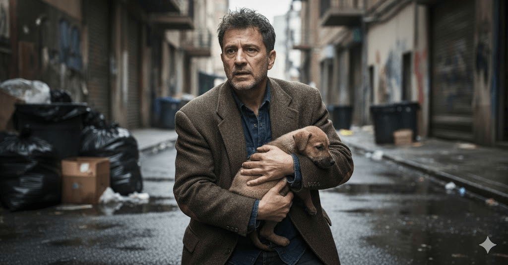 Without a second thought, Alex gently scooped up the fragile pup, its tiny body barely registering weight in his arms. The initial shock of the cold, wet fur quickly gave way to a surge of protective instinct. He wrapped the shivering creature in his jacket, cradling it close to share his body heat. The puppy, too weak to resist, offered no protest, its shallow breaths barely fogging the damp air. Alex’s mind raced, bypassing his morning appointments and urgent tasks. This small life, clinging so tenuously, was now his sole priority.