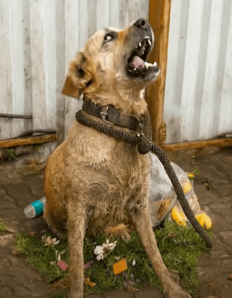 The image captures a moment of raw emotion: a dog, matted and tethered, head thrown back in what could be a howl of despair or a cry for help. Its surroundings suggest neglect – a makeshift bed of scattered debris, a dirty wall in the background. This creature, later named “Braveheart” by his rescuers, was discovered on a particularly bleak Tuesday afternoon by a local animal welfare group responding to an anonymous tip. The initial assessment was grim; Braveheart was underweight, covered in fleas, and displayed severe signs of anxiety and fear. It seemed he had been abandoned for some time, left to fend for himself with only a flimsy tether to keep him from truly escaping his dire circumstances. The rescue team knew this would be no ordinary intervention; Braveheart’s eyes, even amidst his evident distress, held a flicker of something defiant, something resilient. This wasn’t just a rescue; it was the beginning of a profound transformation, fraught with challenges and unexpected turns that would test the limits of compassion and perseverance.