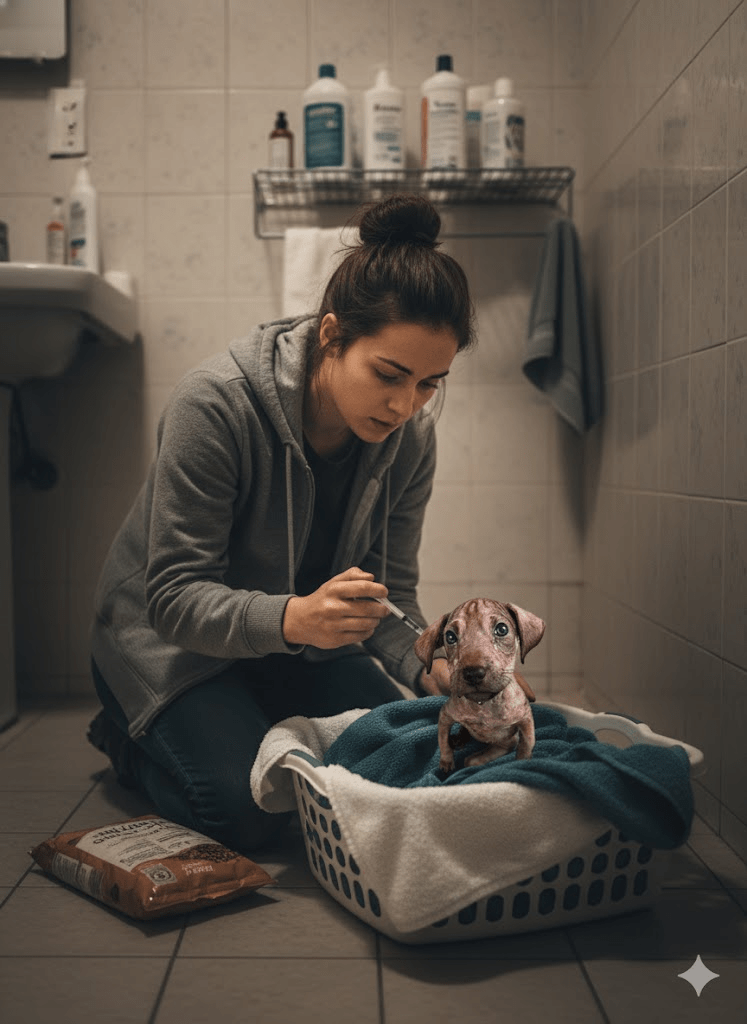 Back at her tiny apartment, Clara knew she couldn’t simply take Hope to the overcrowded shelter where she worked. It was a calculated risk, but she decided to take Hope in herself, creating a makeshift recovery ward in her bathroom. The first few days were a blur of medicated baths, tiny meals of specialized kibble, and sleepless nights spent monitoring Hope’s fragile breathing. Hope was so weak she could barely lift her head, and Clara found herself questioning if she had made the right decision, if this little creature could truly recover.