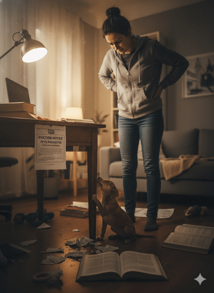 However, a new challenge emerged. Hope, now stronger and more playful, started to chew on everything – books, shoes, even the legs of Clara’s old desk. Clara, already stretched thin by her studies and work, felt a surge of frustration. She loved Hope dearly, but the constant destruction and the looming threat of her landlord discovering the unauthorized pet began to wear her down. It was a tough realization, but she knew she couldn’t keep Hope forever in her small apartment, not without sacrificing her own future.