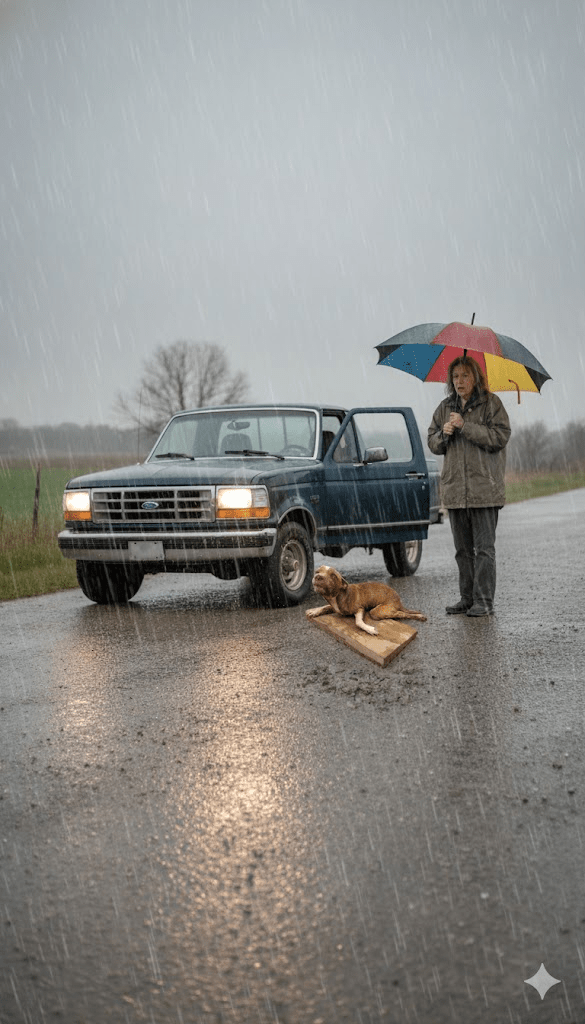Sarah, a veterinary technician known for her compassionate heart, was running late for a distant appointment, forced onto the seldom-used back road due to an unexpected closure on the main highway. Her car, usually a blur of purpose, slowed as she navigated the treacherous puddles. That’s when she saw him – a small, brown heap amidst the brown mud, barely discernible from the debris of the storm. Initially, she dismissed it as a discarded blanket, but something made her pause. A flicker of movement, perhaps a trick of the light, drew her gaze back. She pulled over, her internal clock forgotten, her professional instincts overriding her schedule. As she approached cautiously, umbrella in hand, the full tragedy of the scene unfolded before her.