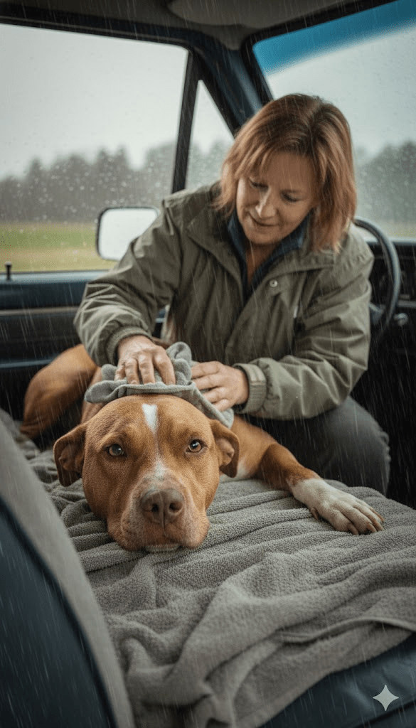 The dog, a male pit bull, was in dire straits. He was clearly starving, his ribs protruding sharply beneath his wet fur. His eyes, however, held a peculiar glint of recognition, a spark that resonated with Sarah’s own empathy. He didn’t growl or snap, merely watched her with a weariness that spoke volumes of his past ordeal. Sarah, experienced in handling distressed animals, knew not to rush. She spoke softly, reassuringly, her voice a gentle counterpoint to the drumming rain. She offered him a small piece of a granola bar she had in her bag, which he devoured with a cautious hunger, his tail giving the faintest, hopeful wag.