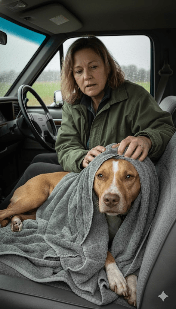 Getting him into her truck was a delicate operation. He was too weak to jump, so Sarah gently lifted him, surprised by his lightness. She wrapped him in an old towel she kept for emergencies, and he nestled onto the passenger seat, shivering but seemingly content to be out of the rain. The warmth of the truck’s heater and the comforting presence of a kind human seemed to work wonders. As Sarah continued her journey, now with an unexpected passenger, she started to formulate a plan. Her appointment could wait; this precious life could not.