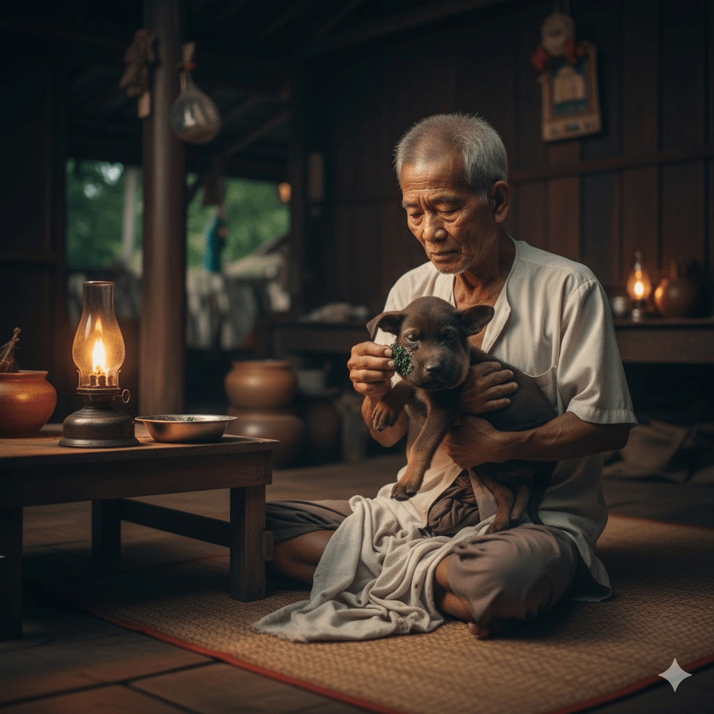 The immediate challenge was immense. The nearest veterinarian was hours away, and the puppy’s condition was deteriorating rapidly. The rescuer, a man named Somchai, knew he had to act fast. Drawing on traditional knowledge and sheer desperation, he administered a poultice of local herbs, hoping to draw out the venom and reduce the swelling. He spent the entire night by the puppy’s side, meticulously cleaning the wound and offering sips of water. The night was a blur of anxiety and small, hopeful gestures. There were moments when Somchai feared the worst, as the pup’s breathing grew shallow and his tiny body shivered uncontrollably. But with each gentle stroke, he whispered words of encouragement, a silent promise to fight for this fragile life. By dawn, a faint flicker of hope emerged; the swelling, though still severe, hadn’t worsened, and the puppy managed a weak whimper in response to Somchai’s touch. It was a minuscule victory, but in that moment, it felt monumental.