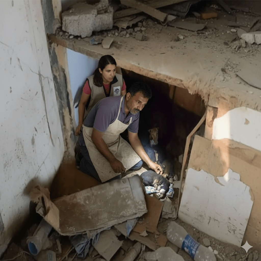 The turning point arrived not with a grand rescue, but with a quiet observation. A local shopkeeper, known for his gruff exterior but hidden kindness, noticed her absence from her usual foraging spots. Driven by an uncharacteristic concern, he ventured into the forgotten spaces behind his shop, eventually discovering her huddled in the broken cavity of what was once a wall. Her emaciated frame and labored breathing painted a grim picture, sparking an urgent call to a small, volunteer-run animal rescue group. What seemed like a straightforward recovery mission soon revealed its first twist: her retreat wasn’t just for solace; she was protecting a secret, an unexpected litter of fragile puppies hidden deeper within the crumbling structure.