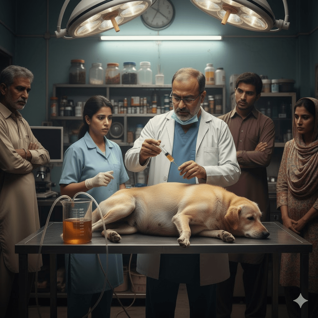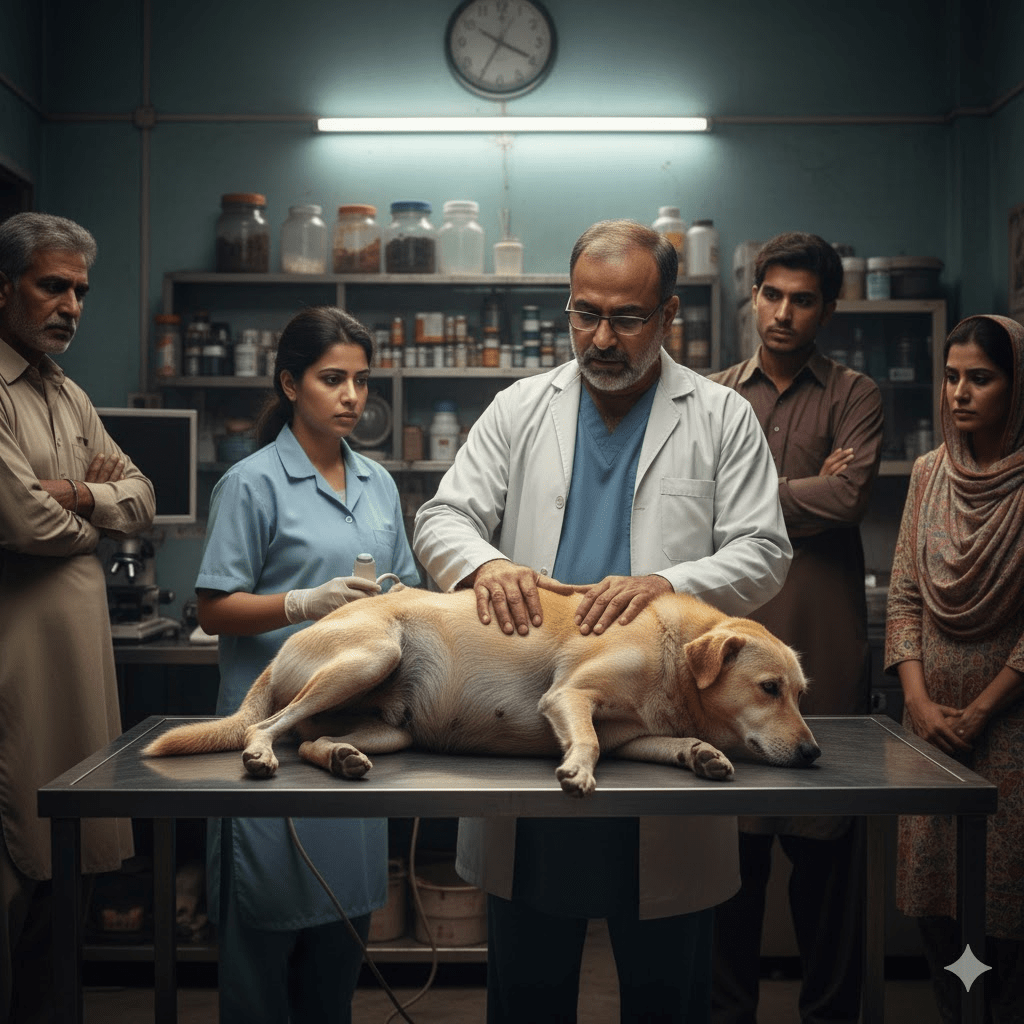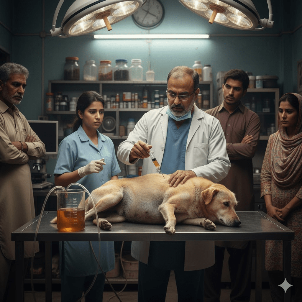 In the bustling, vibrant community of Chahdara town, Lahore, amidst the daily rhythm of life, a quiet struggle was unfolding that would soon captivate the hearts of many. Her name was Fufy, a stray dog whose gentle demeanor belied a hidden battle threatening to consume her. For weeks, residents had noticed a peculiar change in Fufy. Her belly, once proportionate to her slender frame, had begun to distend dramatically, growing larger with each passing day. It wasn’t the healthy roundness of a pregnant dog; this was something far more alarming, a grotesque swelling that made every movement an effort and cast a shadow over her once playful spirit.