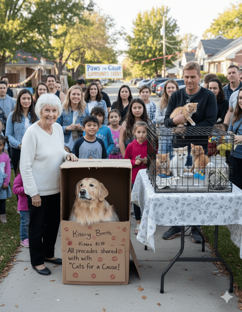 During their discussion, a brilliant compromise was struck. Buddy’s “Kissing Booth” would remain, but all proceeds would now be split equally between dog and cat charities. Mrs. Gable updated the sign on the box, much to the delight of the community, who applauded the collaborative spirit. This newfound alliance even led to a joint “Paws for a Cause” event, where Buddy, now a local celebrity, made a guest appearance alongside several adoptable kittens, drawing an even larger crowd and significantly boosting donations for both organizations.