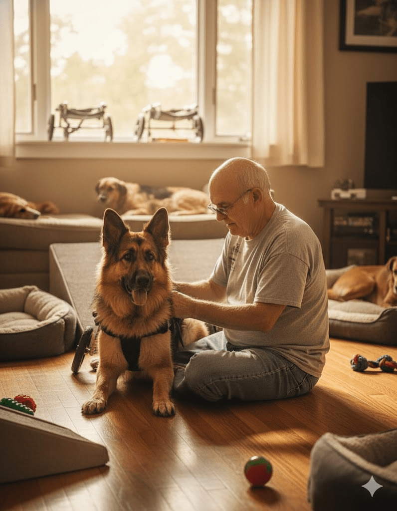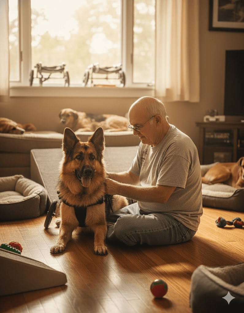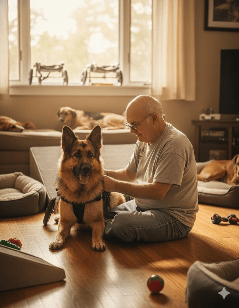 From that pivotal moment, Gregory’s quiet suburban home began its metamorphosis into a haven for the “unwanted.” Word spread, initially through local shelters and then via a burgeoning network of compassionate individuals, about the man who wouldn’t give up on paralyzed dogs. Max became the unofficial ambassador, his story inspiring a trickle, then a steady stream, of new arrivals. Each dog came with its own tragic history—a hit-and-run, a severe spinal injury, a congenital defect that rendered their back legs useless. Gregory, now affectionately known as “the dog dad with the wheels” by locals, met each challenge with unwavering resolve. He honed his skills, becoming an expert at customizing wheelchairs, understanding canine rehabilitation, and providing the specialized care these animals desperately needed. His home, once an ordinary dwelling, slowly transformed into a meticulously adapted space, designed to cater to every need of its four-legged, wheelchair-bound residents.
