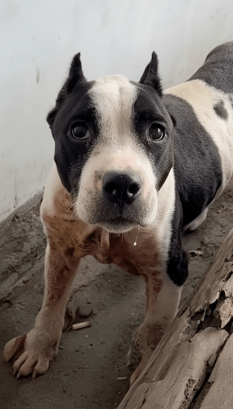In the bustling streets of a quiet suburban neighborhood in Sydney, Australia, on a sweltering afternoon in late October 2025, a scene unfolded that would capture the hearts of animal lovers worldwide and spark a global conversation about pet responsibility. Emily Hargrove, a 32-year-old veterinary nurse and avid dog rescuer, was walking her own rescued greyhound along the coastal paths near Bondi Beach when she spotted something heartbreaking amid the usual flurry of joggers, surfers, and café patrons. Tethered to a rusted metal pole outside a rundown takeaway shop, a black-and-white pit bull puppy—barely six months old—cowered in the shade of a splintered wooden crate. The dog’s ribs protrended starkly beneath patchy fur matted with grime, its paws raw from scavenging on concrete littered with cigarette butts and shattered glass. Drool hung from its cracked lips as it weakly gnawed on a discarded chicken bone pulled from an overflowing trash bin nearby. What began as a routine stroll turned into a confrontation that exposed layers of neglect, hidden community secrets, and an unexpected chain of events involving international media, a viral video, and a courtroom drama that crossed continents.