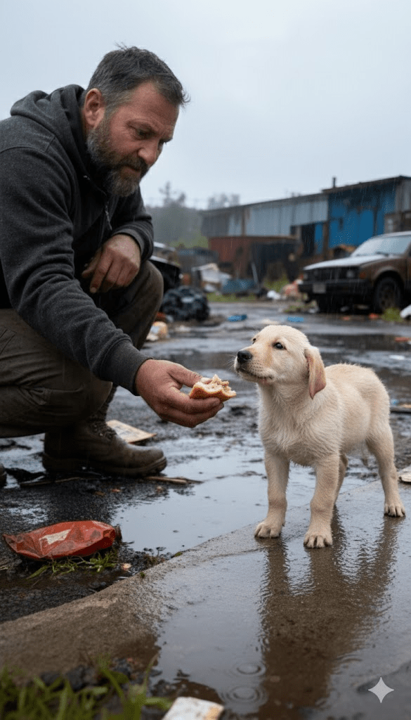 Yet, something in the puppy’s fragile gaze compelled him. He rummaged in his lunchbox, pulling out a half-eaten sandwich. Kneeling, he extended a calloused hand, offering the morsel to the hesitant pup. The puppy, initially wary, sniffed the offering, its tail giving a tentative wag. It was a small gesture, but in that moment, it was a bridge between two vastly different worlds – one of isolation, the other of vulnerability.