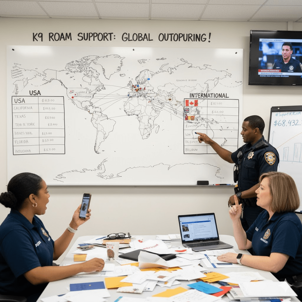 Just as the local police foundation thought they had seen the full extent of the generosity, another astonishing development unfolded. Donations began arriving from beyond U.S. borders. First, Canada, then the United Kingdom, and finally, Belgium – Roam’s country of origin – all contributed to the growing fund. It was an unprecedented display of international solidarity for a single K9 officer. The total quickly soared past $68,000, a sum far exceeding anyone’s wildest expectations.