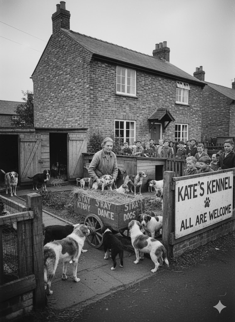 In the quiet town of Camberley, amidst the looming shadows of World War II, a remarkable woman embarked on a journey that would forever change the fate of countless abandoned animals. Kate Ward, a name that would become synonymous with unwavering compassion and tireless dedication, carved out a legacy as England’s first dog rescuer. From 1943 until her passing in 1979 at the age of 84, Kate devoted her life to providing solace and sanctuary for over 600 stray dogs, each with a story of its own. Her simple, yet profound, mission began not with a grand declaration, but with a quiet act of kindness, a single wagging tail transforming her modest home into a haven for the discarded and forgotten. This is the story of a woman who, against all odds and societal expectations, built an empire of empathy, one paw print at a time.