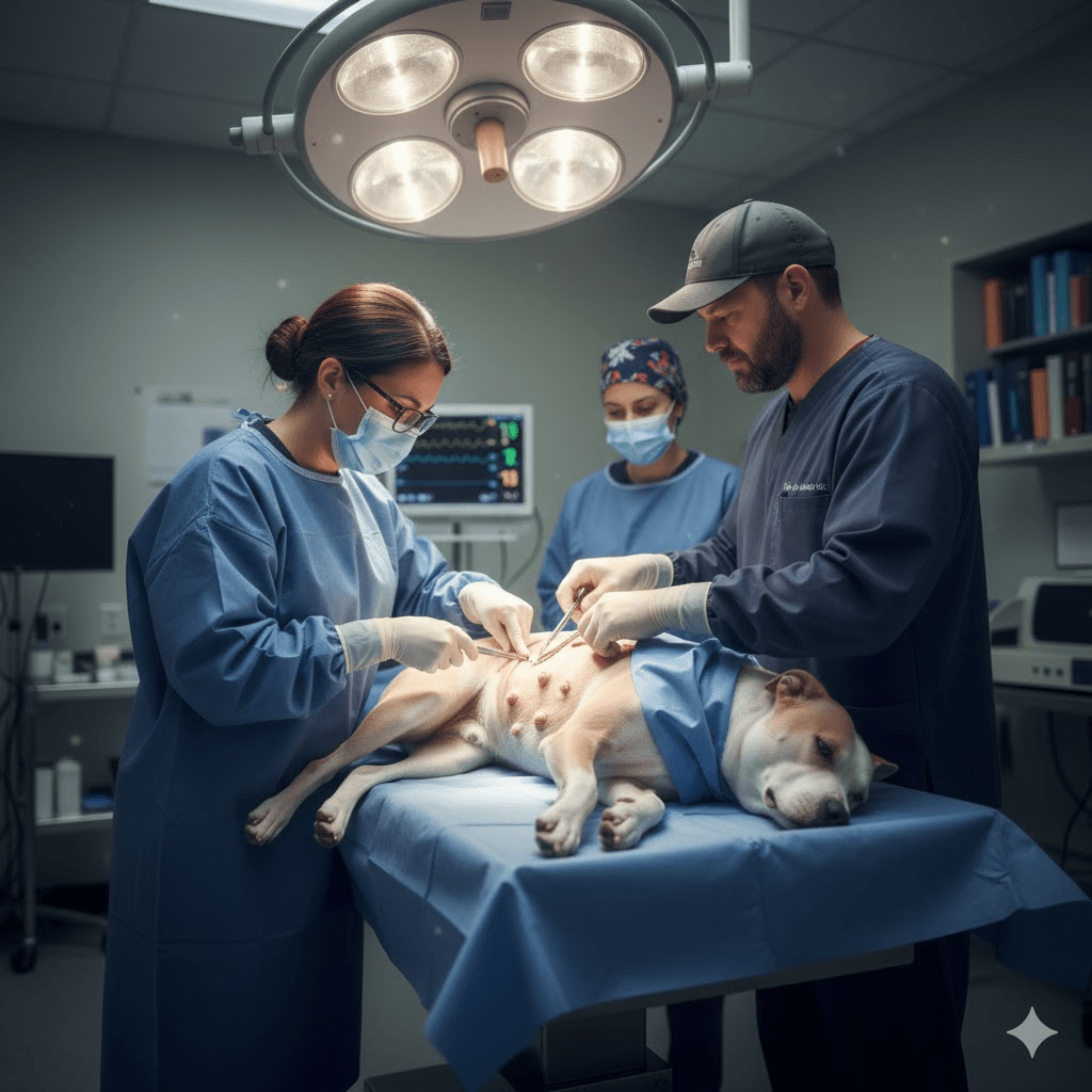 A glimmer of hope emerged from an unexpected corner: a retired veterinary surgeon, Dr. Eleanor Vance, known for her intricate and often risky operations, offered her expertise pro-bono. Dr. Vance, having seen Libby’s picture and read her story, felt a deep connection to the resilient dog. Her arrival brought a renewed sense of purpose to the clinic. Together, Dr. Evans and Dr. Vance meticulously planned a series of operations, prioritizing the removal of the most debilitating tumors first. It was a daunting task, each surgery carrying its own set of risks, but Libby, in her quiet fortitude, seemed to understand the gravity of her situation, enduring each procedure with a remarkable resilience that inspired everyone around her.