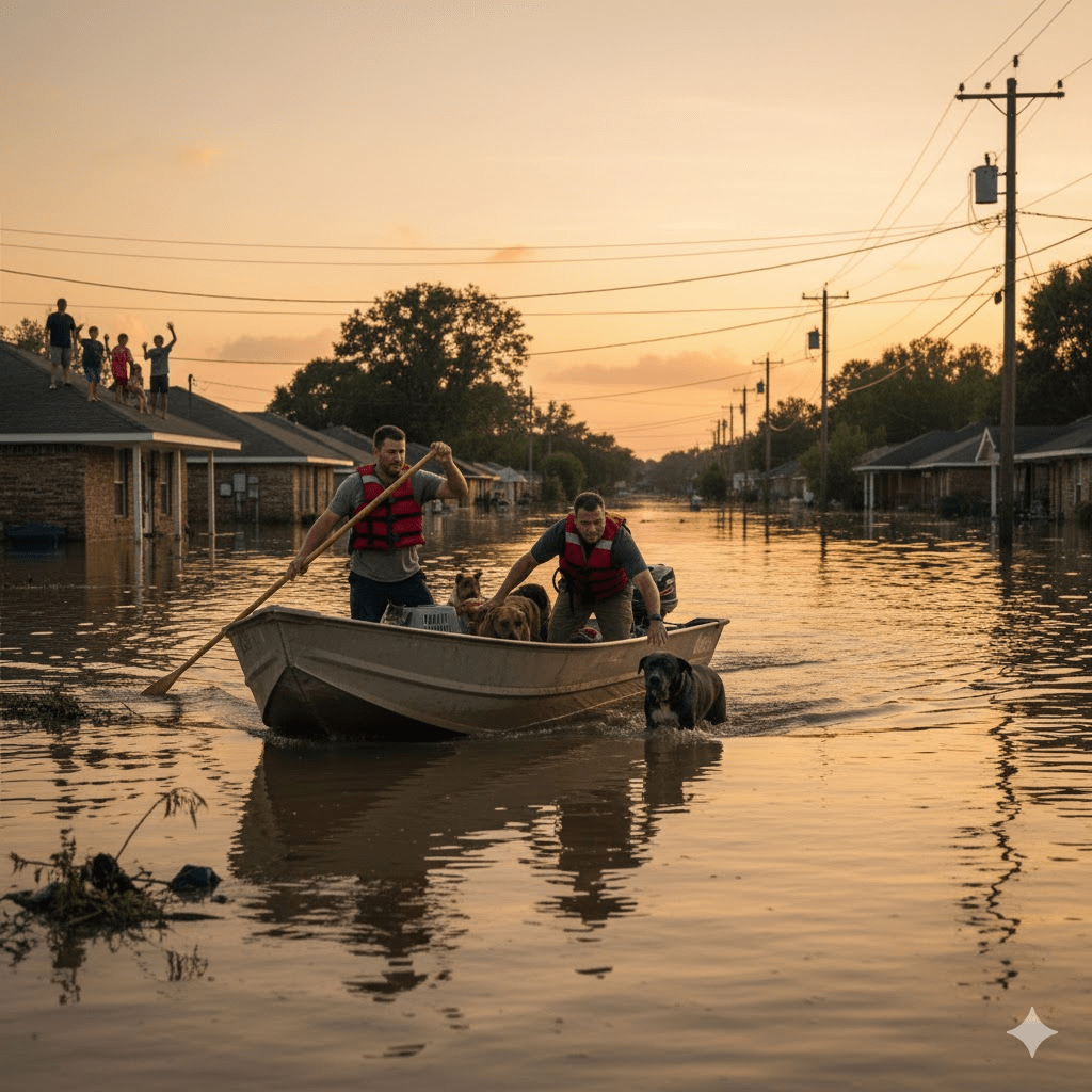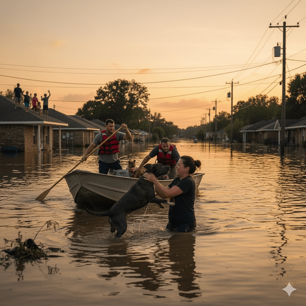The murky waters rose with an alarming swiftness, transforming familiar landscapes into a chaotic, watery expanse. Louisiana, a state no stranger to nature’s fury, found itself grappling with an unprecedented flood that left a trail of widespread destruction and claimed 13 precious lives. Homes were submerged, livelihoods shattered, and a sense of despair threatened to engulf communities. Yet, amidst this harrowing backdrop, stories of extraordinary courage and unexpected twists began to surface, painting a powerful narrative of resilience and the indomitable spirit of both humans and animals. It was in these dire moments that the true character of a community, and indeed, individual heroes, shone brightest, proving that even in the darkest of times, hope could emerge from the most unlikely places, guided by compassion and an unwavering will to help.