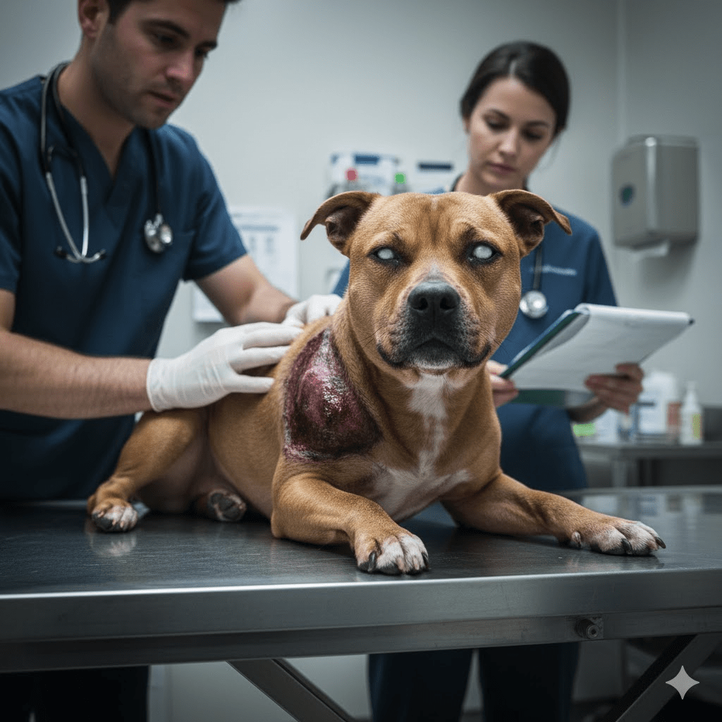 The desolate urban landscape often hides stories of silent suffering, tales that unfold unnoticed beneath the hurried pace of city life. It was on such a forgotten street that Max, a Staffordshire Bull Terrier, was discovered, a haunting tableau of neglect and cruelty. His condition was nothing short of catastrophic: blindness shrouded his eyes, a monstrous tumor disfigured his body, one leg was tragically severed, and his scarred hide bore witness to unimaginable abuse. The air around him seemed heavy with the weight of past traumas, a testament to the darkest corners of human indifference. Yet, amidst this profound despair, a flicker of defiance burned within Max. His tail, a beacon of unyielding spirit, never ceased its gentle wagging, a powerful, unspoken promise of hope in the face of utter devastation. This was not merely an animal on the verge of collapse; it was a testament to an unbreakable will, a soul refusing to surrender to the cruel hand fate had dealt.