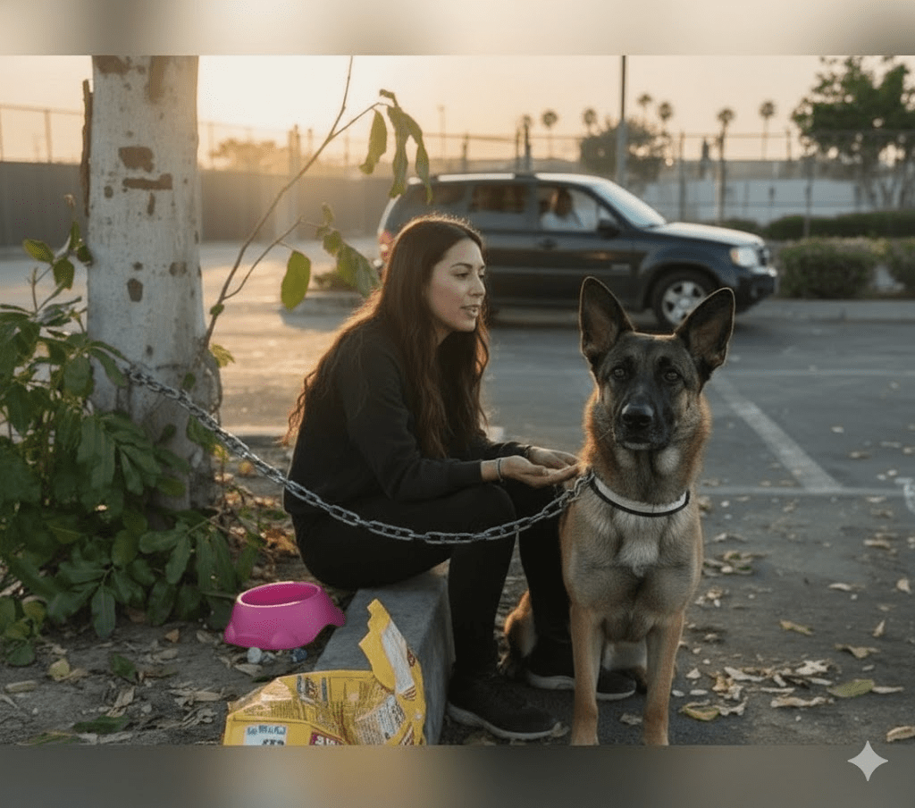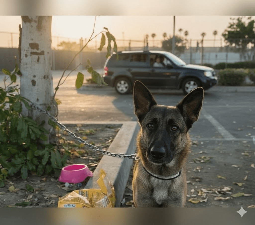 The late afternoon sun cast long shadows across the deserted parking lot, illuminating a scene that would wrench the heart of any animal lover. Chained to the base of a solitary tree, a German Shepherd mix, later identified as Melody, lay forlornly. Her eyes, wide with a mixture of confusion and profound sadness, stared after the receding car that had, moments before, contained her entire world.