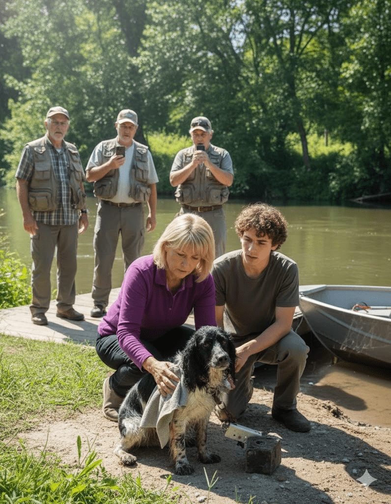 The tranquil morning in the quiet riverside town of Oakhaven was shattered not by a siren, but by a sound far more primal: a desperate, ragged cough. What followed was a sight that would forever haunt those who witnessed it, and one that has since sent ripples of shock and outrage across the globe. A black and white spaniel, dripping wet and caked in mud, stumbled from the murky waters of the Willow Creek, a heavy metal anchor still defiantly dragging from its neck. This wasn’t a playful dip; this was a calculated, heinous attempt at murder, thwarted by an indomitable will to live. The dog, later named “Anchor” by his rescuers, had defied the odds, clawing his way back from a watery grave, an unwitting survivor who would expose a sinister truth lurking beneath Oakhaven’s picturesque facade. His improbable emergence from the river, weighted down by a device meant to ensure his demise, was not just a testament to his incredible resilience, but also the first twist in a narrative far more complex and disturbing than anyone could have initially imagined.