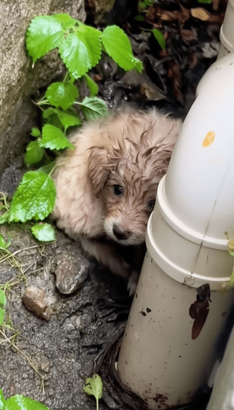 In the frost-bitten underbelly of a forgotten industrial park in Manchester, England, where the relentless drizzle of a late November afternoon turned the ground into a slick, unforgiving mire, a tiny golden retriever puppy—barely eight weeks old and caked in layers of grime—pressed his shivering body against a rusted drainage pipe that still held faint traces of warmth from the factory’s dying boilers. His fur, once a fluffy beacon of puppy innocence, now clung to his frail frame like wet paper, and his faint, whimpering cries echoed softly through the overgrown weeds and discarded debris, a sound so fragile it could have been swallowed by the wind. No one knew how he ended up there: abandoned by a breeder overwhelmed by an unexpected litter, or perhaps separated from his mother during a chaotic eviction from a nearby squat. What began as a solitary struggle for survival in that damp English corner would spiral into an international saga of compassion, technology, and unforeseen heroism, proving that one small voice in the wilderness can ignite a chain of miracles across continents.