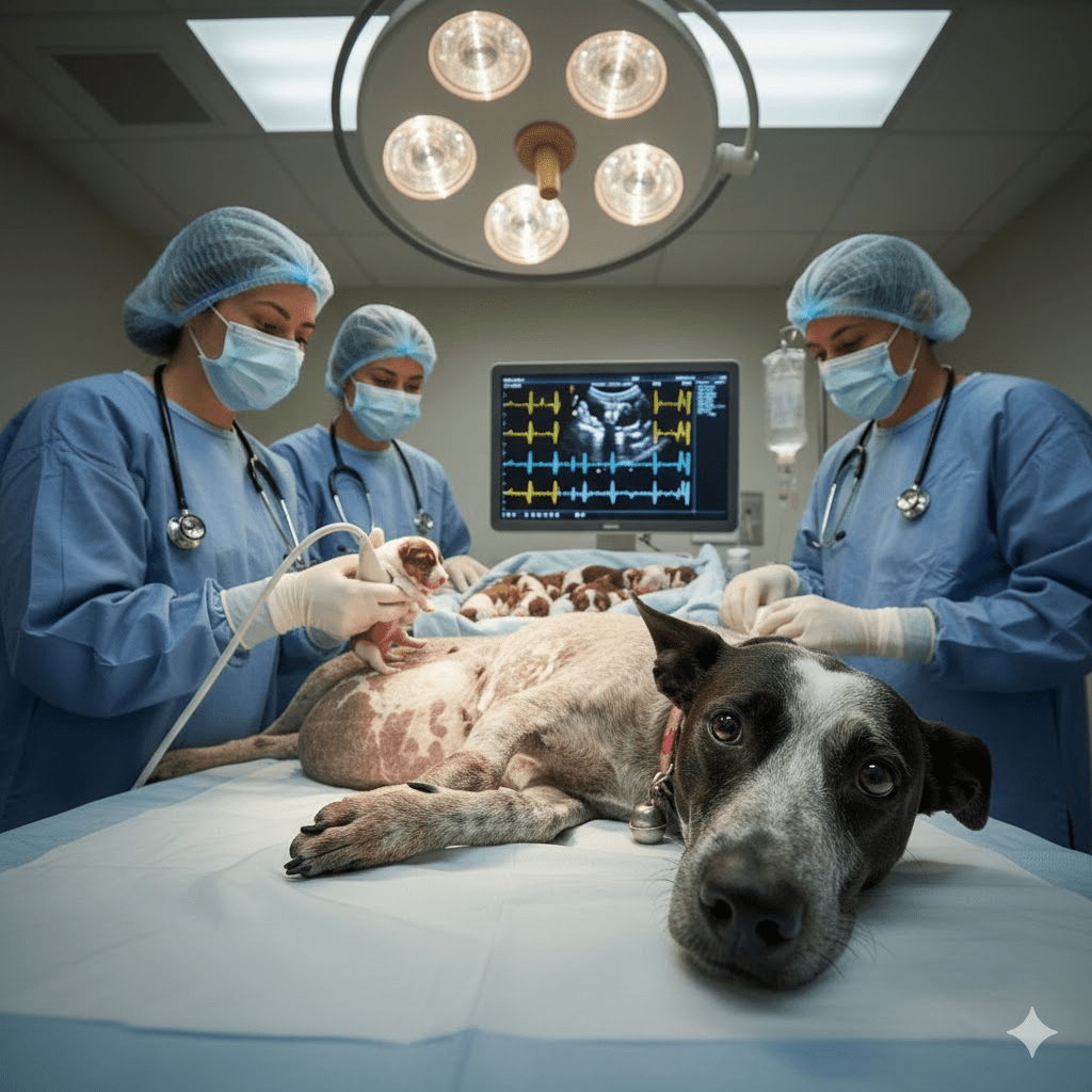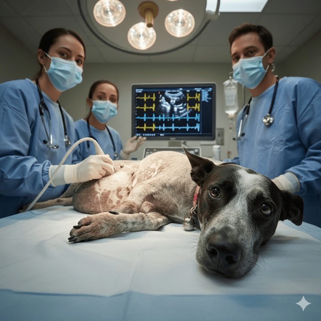 When Hope arrived at the veterinary clinic, the medical team was stunned by her condition. Her distended belly was unlike anything they had seen, prompting immediate and extensive diagnostic tests. Ultrasounds revealed not a tumor, but movement – dozens of tiny heartbeats fluttering within her. The sheer number was unprecedented, even for a large breed dog. The vets exchanged worried glances; a litter this size presented immense risks for both mother and pups.