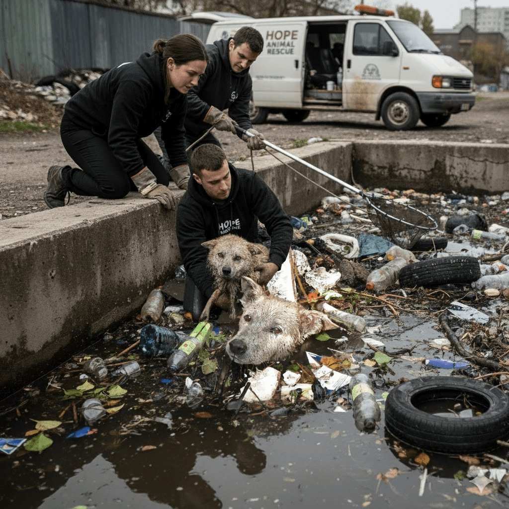 The murky, debris-choked waters offered little hope. For days, the small, matted dog had struggled, its once vibrant fur now caked with mud and waste, its eyes pleading for a salvation that seemed increasingly unlikely. Entangled amidst plastic bottles, discarded branches, and forgotten dreams, its head barely breached the surface, a testament to a fading will to live. This was no ordinary puddle; it was a festering ditch, a forgotten corner of the urban landscape where life rarely thrived, let alone escaped. Passersby, accustomed to the grim reality of the area, had glanced, perhaps sighed, and moved on, the dog’s plight just another sad detail in a world overflowing with them. But on this particular Tuesday, the universe decided to write a different ending for this forgotten creature. It began not with a grand gesture, but with a faint whimpering sound, carried on a gentle breeze, reaching the ears of someone who, unlike many, chose to stop and listen.