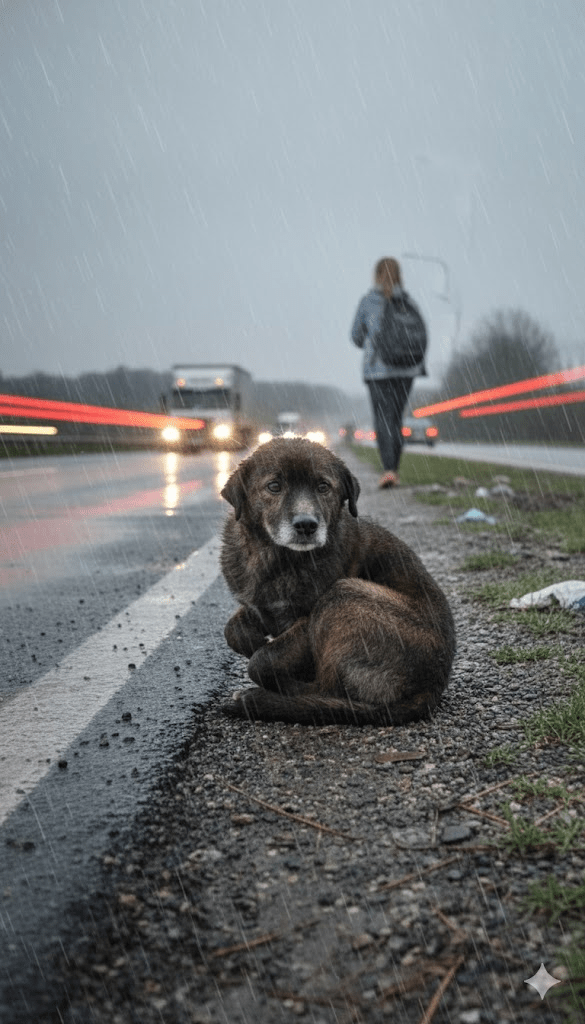 It was late afternoon when a woman, Clara, on her way home from a grueling shift, spotted a small lump on the shoulder of the busy road. At first, she dismissed it as debris, a common sight. But something, a flicker of movement, perhaps, or an almost imperceptible whine carried on the wind, tugged at her conscience. She slowed her car, peering closer through the streaked window. There, amidst the gravel and weeds, was the dog, his head bowed, seemingly resigned to his wet misery. Clara, a known animal lover in her community, felt a familiar ache in her chest. She pulled over, a knot of dread forming in her stomach, preparing herself for what she might find. Approaching cautiously, she saw his eyes – deep, soulful, and utterly devoid of hope. He didn’t bark, didn’t growl, just watched her with a weary resignation that broke her heart.