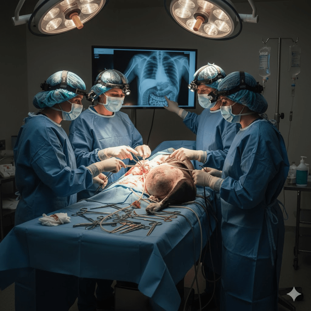 The journey to the operating table was fraught with unexpected twists. Initial diagnostics revealed not one, but two large masses, deeply intertwined with vital organs, making the surgery incredibly complex and risky. The first mass, a benign but enormous growth, was superficially concerning. However, the second, hidden deeper, proved to be a rare and aggressive form of soft tissue sarcoma. The veterinary team, initially hopeful, now faced a grim prognosis. Dr. Carter and her team spent days meticulously planning, consulting with specialists across the country. There were moments of despair, late nights poring over scans, and the heavy burden of making life-or-death decisions. The financial strain was also immense, with the specialized surgery and subsequent treatments requiring significant funds. Yet, the overwhelming public response to Nina’s story, fueled by social media campaigns, became a powerful and unexpected turning point. Donations poured in from all corners of the globe, a testament to the collective empathy of strangers moved by Nina’s plight. This outpouring of support transformed a daunting challenge into a shared mission, giving the team the resources and renewed determination they needed.