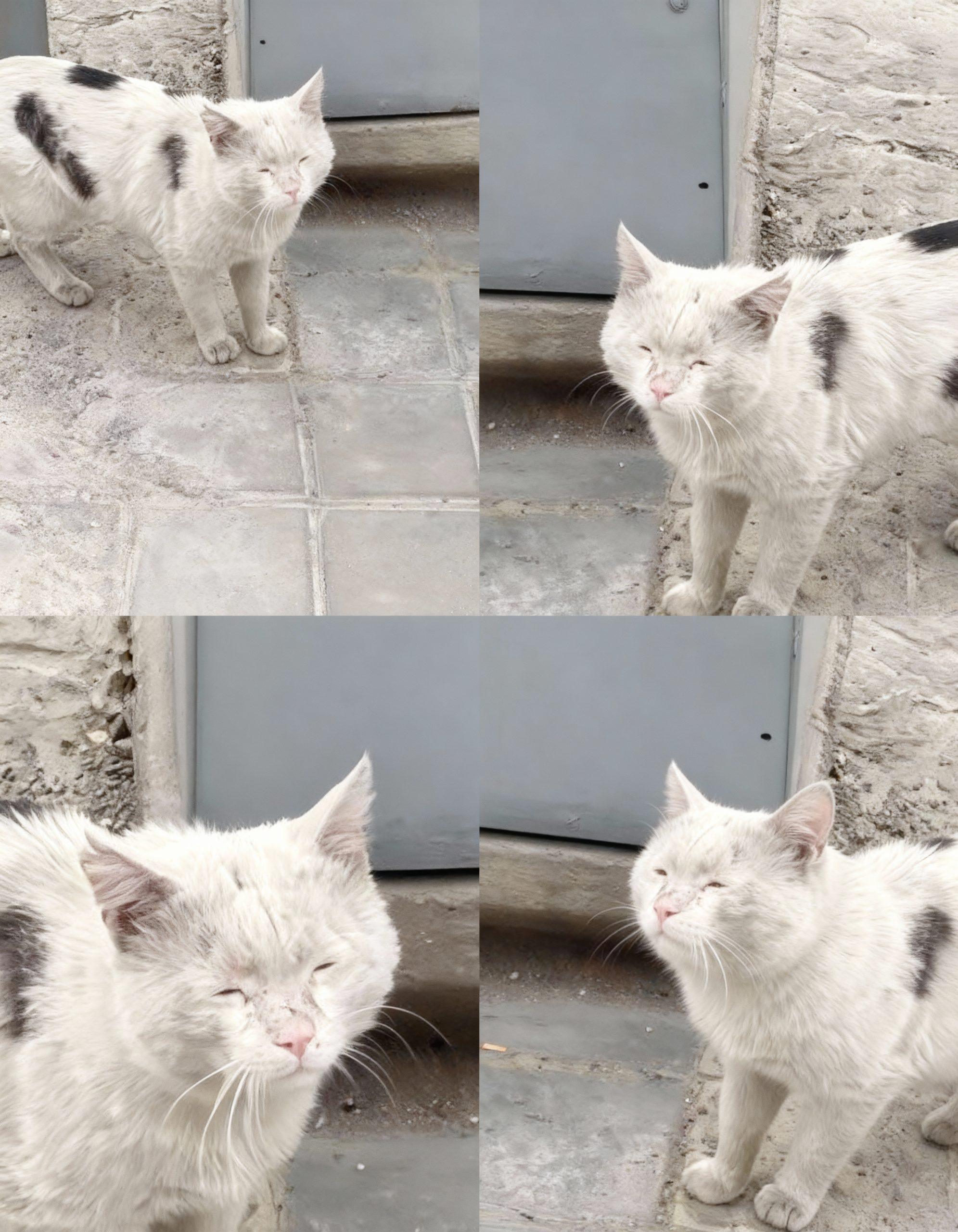 In the dusty back alleys of a quiet suburban neighborhood, where cracked sidewalks meet faded blue garage doors, a frail white cat with black patches wandered aimlessly one sweltering afternoon—his fur matted with grime, his eyes clouded by age and sorrow, his once-proud frame reduced to skin and bones after years of hardship no one had bothered to notice. Passersby hurried along, averting their gazes from the elderly feline who sat trembling near a discarded cardboard box, his whiskers twitching at every distant sound, as if hoping against hope that someone—anyone—might recognize the gentle spirit still flickering beneath his weathered exterior. Little did the world know that this seemingly ordinary moment of neglect was about to unravel into an extraordinary tale of rejection, redemption, and unbreakable loyalty that would restore faith in second chances for even the most overlooked souls.