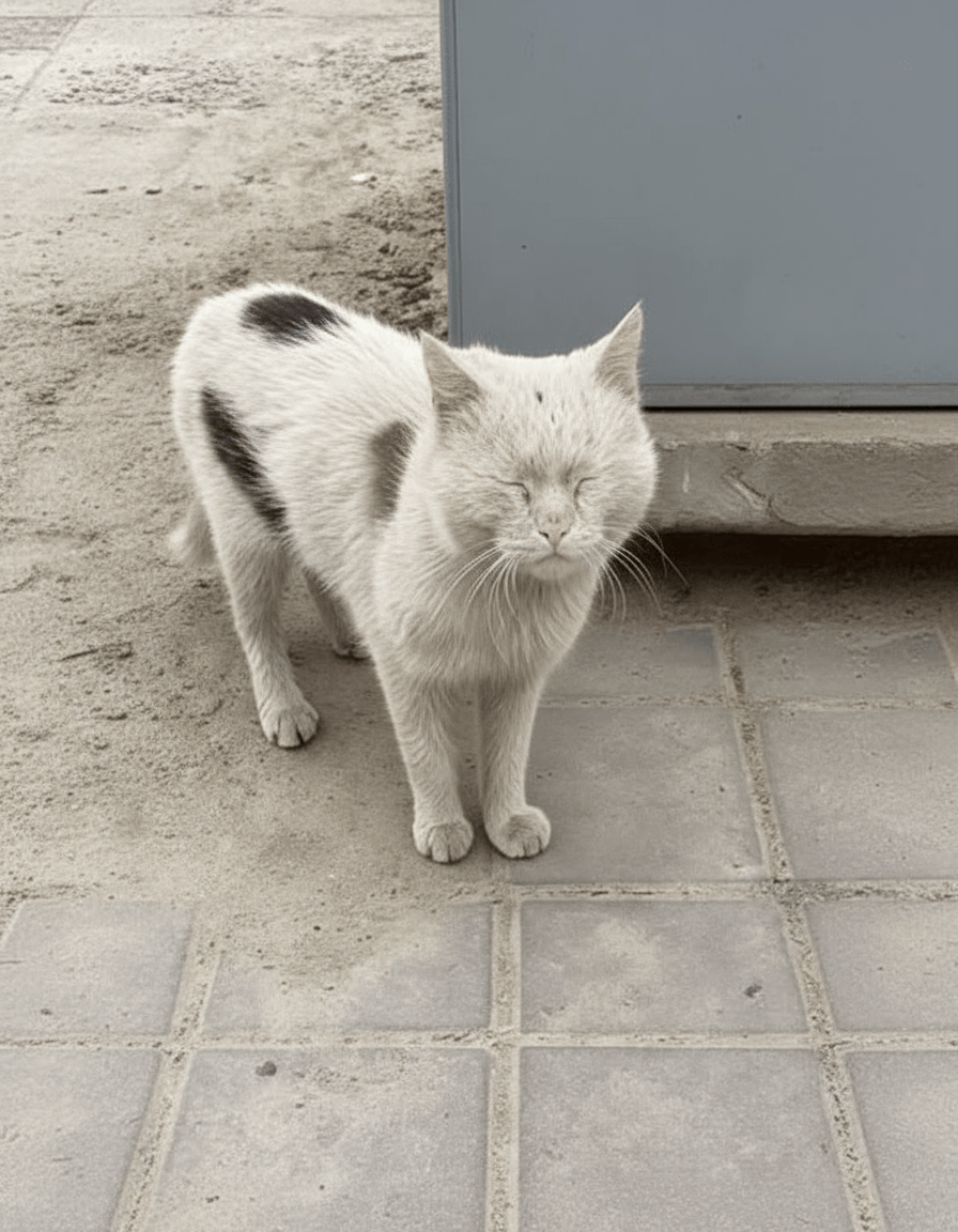 Marrakech’s medina was a sensory overload for Patch: the cacophony of souk vendors, the aroma of mint tea, the scramble of feral cats competing for scraps. Liam cared for him diligently at first, installing a catio on the rooftop for safe sunbathing. But in 2022, an unexpected detail emerged that would alter everything—Patch began losing his vision. It started subtly: hesitation at stairs, missed jumps onto furniture. A local vet diagnosed progressive retinal atrophy, a genetic condition common in certain lineages, accelerated perhaps by the stress of multiple relocations and intense sunlight exposure. By mid-2023, Patch was completely blind, navigating by whisker touch and memory alone. Liam, facing project deadlines and his own family’s return to Australia, felt overwhelmed. In a moment of quiet desperation, he left Patch near the familiar rusted door of a nearby bakery, believing the shopkeepers’ kindness would sustain him. A note tucked into his collar read: “Please care for Patch. He is old and blind but loving.”