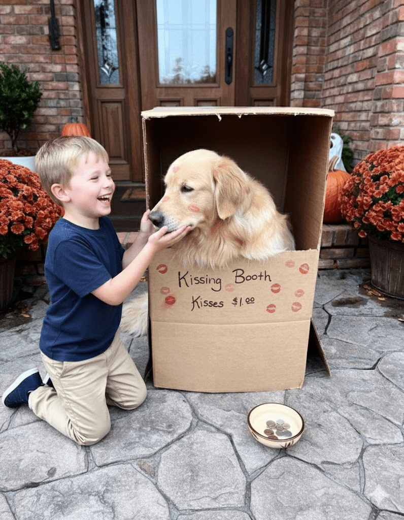 Golden Retriever’s Kissing Booth Raises Eyebrows and Community Spirit
