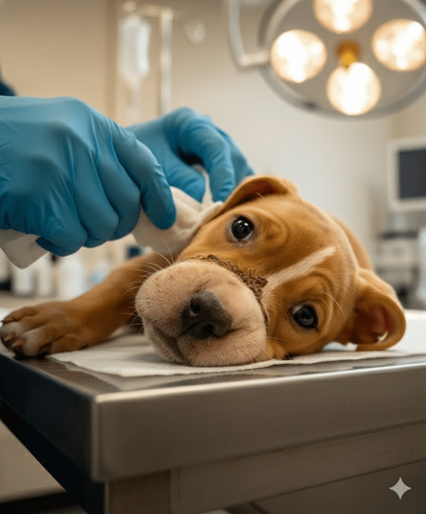 The small, trembling puppy, barely old enough to be away from its mother, lay on the examination table. Its eyes,…