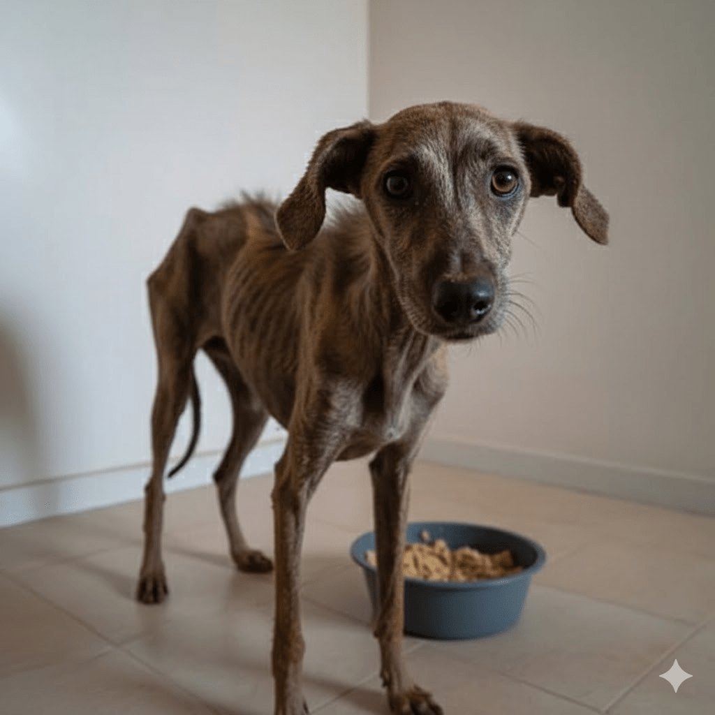 The desolate image of a dog, gaunt and weary, its ribs starkly visible beneath a patchy coat, tells a story…