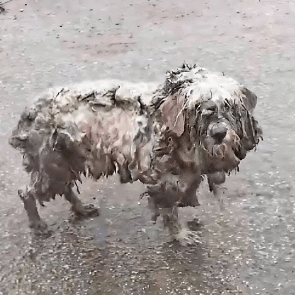 The relentless downpour mirrored the despair in his eyes. Shivering, matted with mud, and utterly alone, a large, shaggy dog…