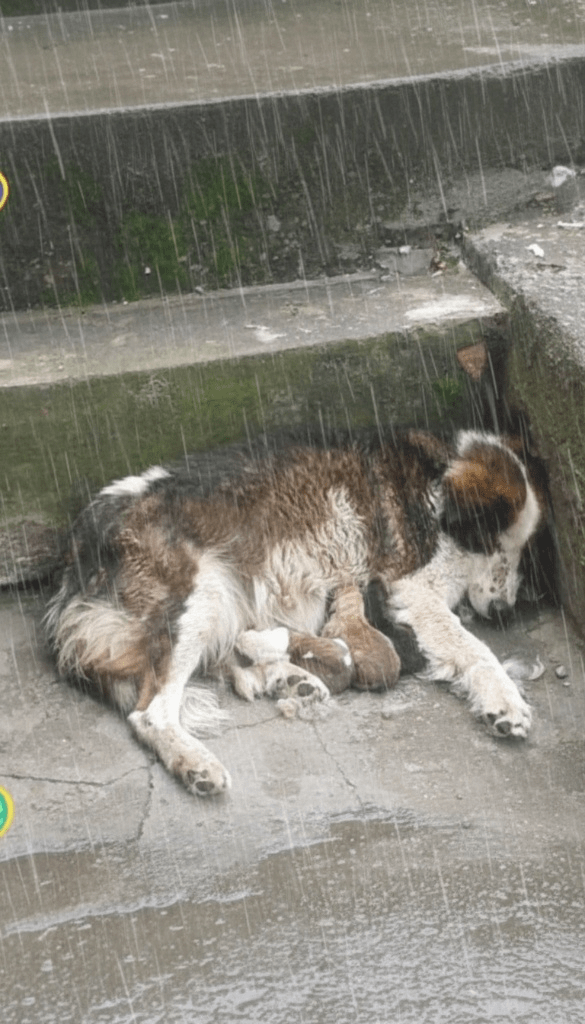 Mother’s Shield: A Stray Dog’s Defiance Against the Storm
