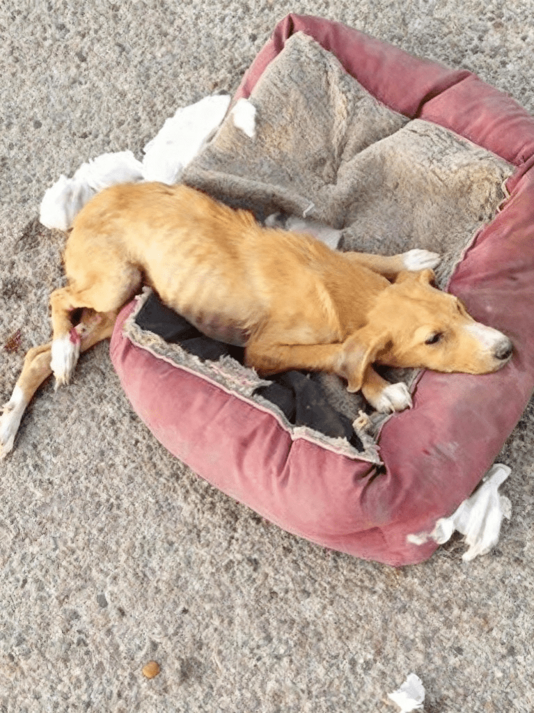 The silence of the abandoned lot was broken only by the whimpering. Tucked away in a tattered, once-pink dog bed,…