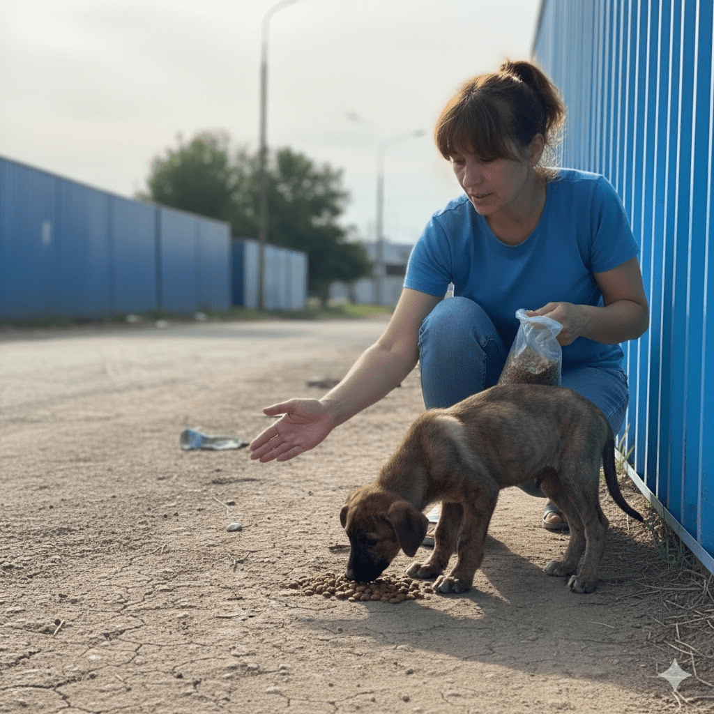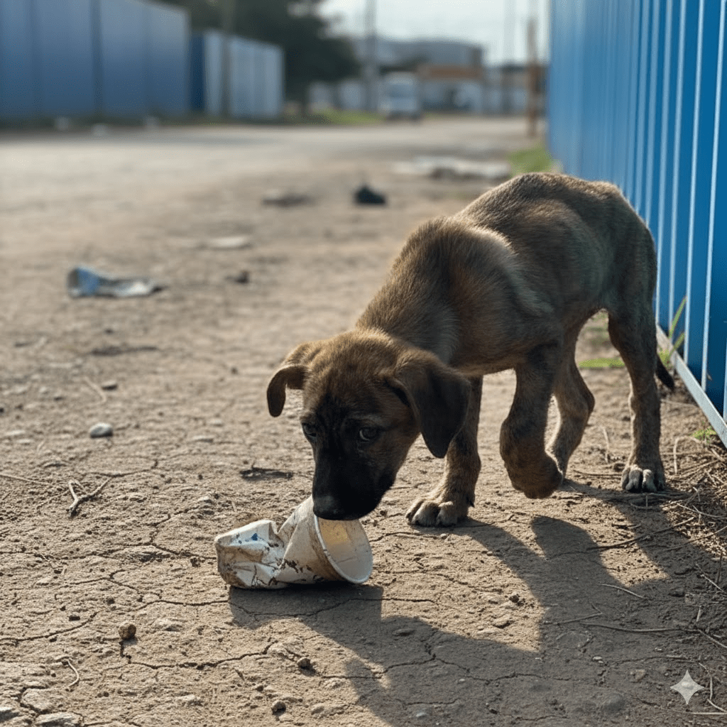 One sweltering afternoon, a local resident, Maria, was walking her usual route past the industrial area when her eyes caught a small, huddled form against the blue container. At first, she almost dismissed it as a pile of rags, but then she saw the subtle movement, a faint lift of a head. Her heart ached at the sight of the puppy, so small and utterly defenseless. Maria, known for her compassionate nature, always carried a small bag of dog kibble for the strays she often encountered. She approached cautiously, speaking in soft, reassuring tones. Pedrinho, initially wary and flinching at her gentle movements, eventually, with a tentative sniff, began to eat. It was a small gesture, but for Pedrinho, it was a lifeline, a glimmer of hope in his dark world. He devoured the food with a desperate hunger, his tiny body trembling with each gulp. Maria, observing his condition, knew that feeding him once wouldn’t be enough. This little creature needed more than just a meal; he needed a miracle.