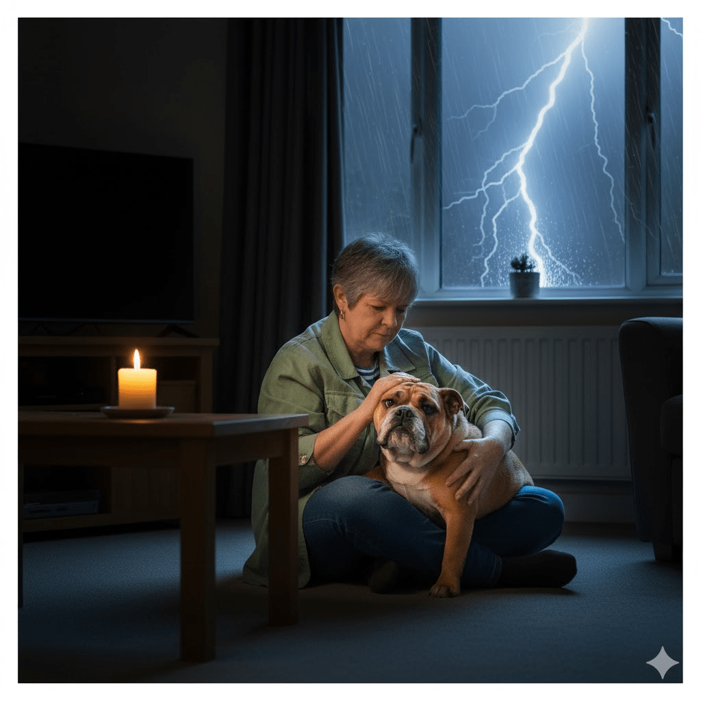 With the medical scare behind them, Peggy and Susan were finally ready for the home trial. The shelter’s dedicated team, often battling stingy social media algorithms to get their animals noticed, had put in immense effort, and the community’s shares had undeniably made a difference in spreading Peggy’s story. However, a new challenge emerged almost immediately. On the very first night, a sudden, torrential downpour caused a localized power outage in Susan’s neighborhood, plunging her home into darkness. Peggy, already adjusting to a new environment, became visibly anxious, her deep-seated fear of storms triggered by the eerie silence and flickering emergency lights.