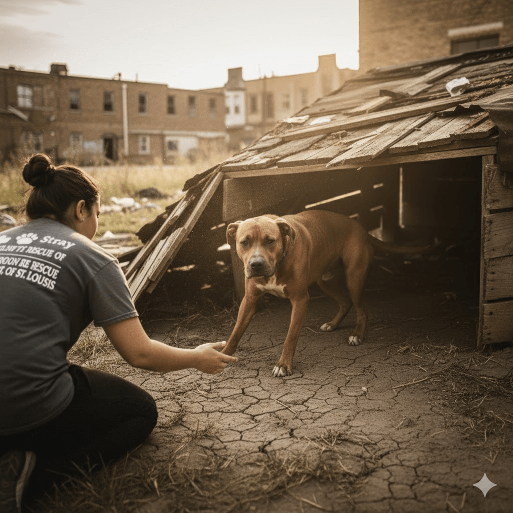 Each day was a battle against hunger, thirst, and the gnawing pain of his condition. His ribs protruded like a skeletal cage, a testament to the weeks, perhaps months, he had endured without adequate sustenance or care. Hope was a fading ember until a faint whimper, carried on the breeze, reached the ears of a vigilant passerby. This wasn’t just another stray; this was a life hanging by a thread, a testament to resilience against unimaginable odds. The call to Stray Rescue of St. Louis was made, initiating a chain of events that would transform Scooch’s tragic narrative into a poignant saga of survival, compassion, and the unwavering power of hope.