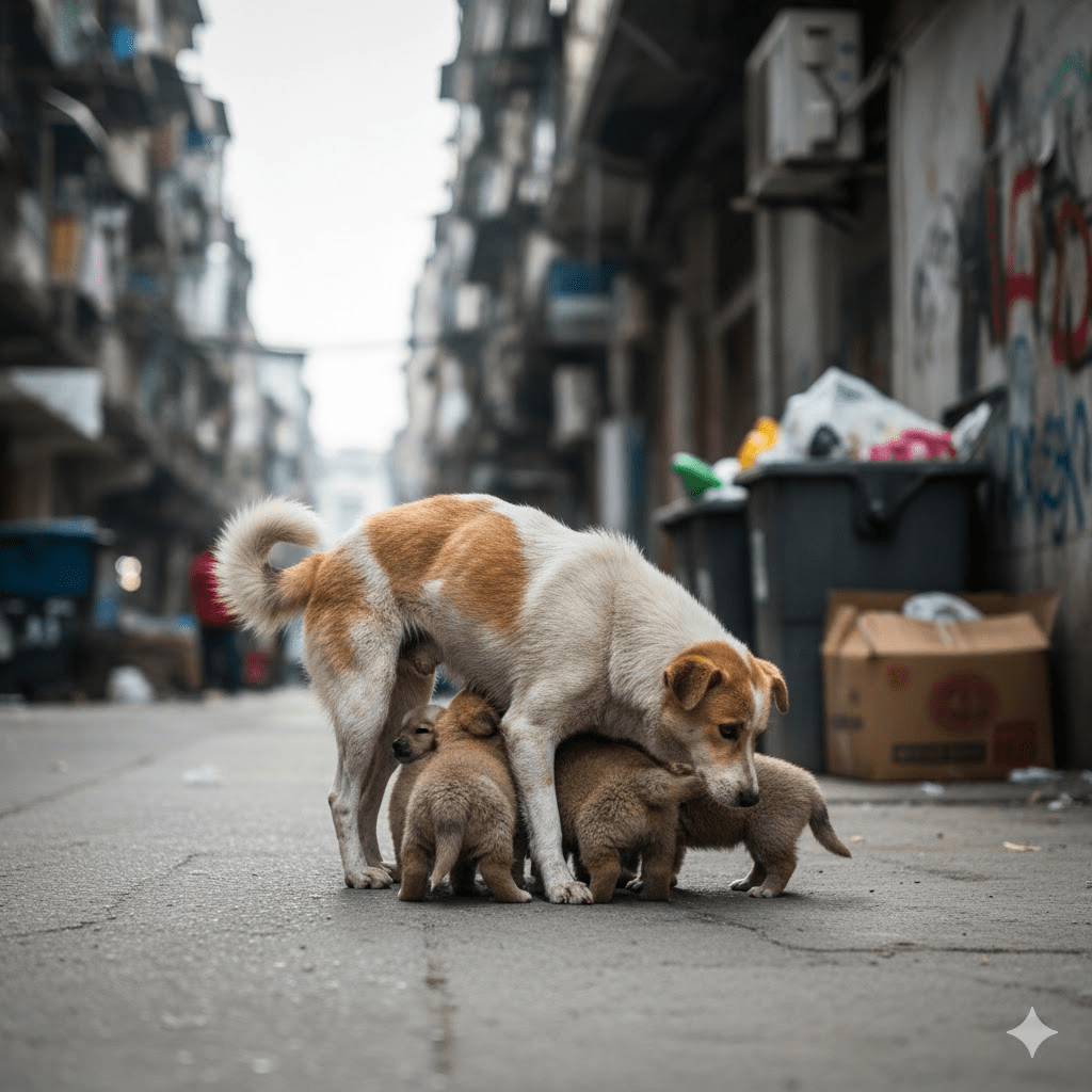 Despite this profound disability, a miracle was brewing beneath her, a litter of tiny, vulnerable puppies, completely dependent on their resilient mother. Her determination to protect and nourish them, even as she herself faced starvation and the constant threat of the streets, was a sight that moved even the most hardened onlookers.