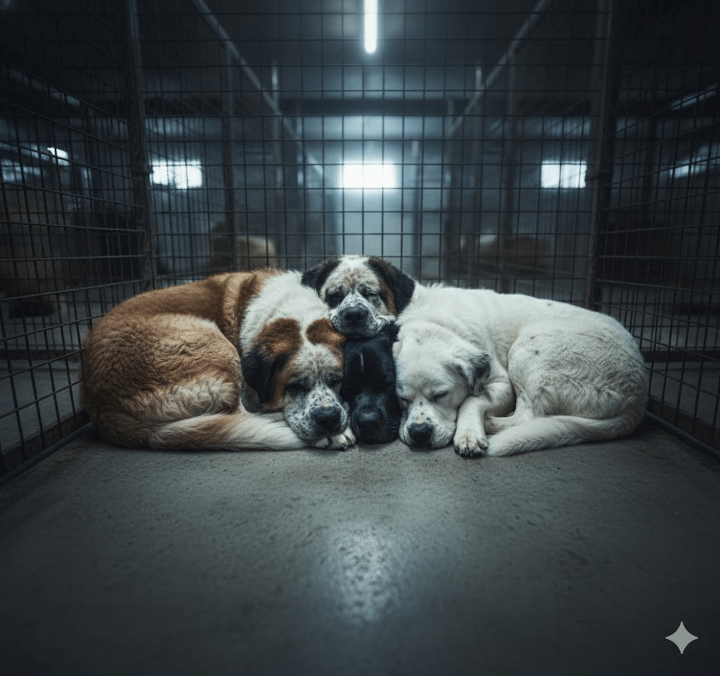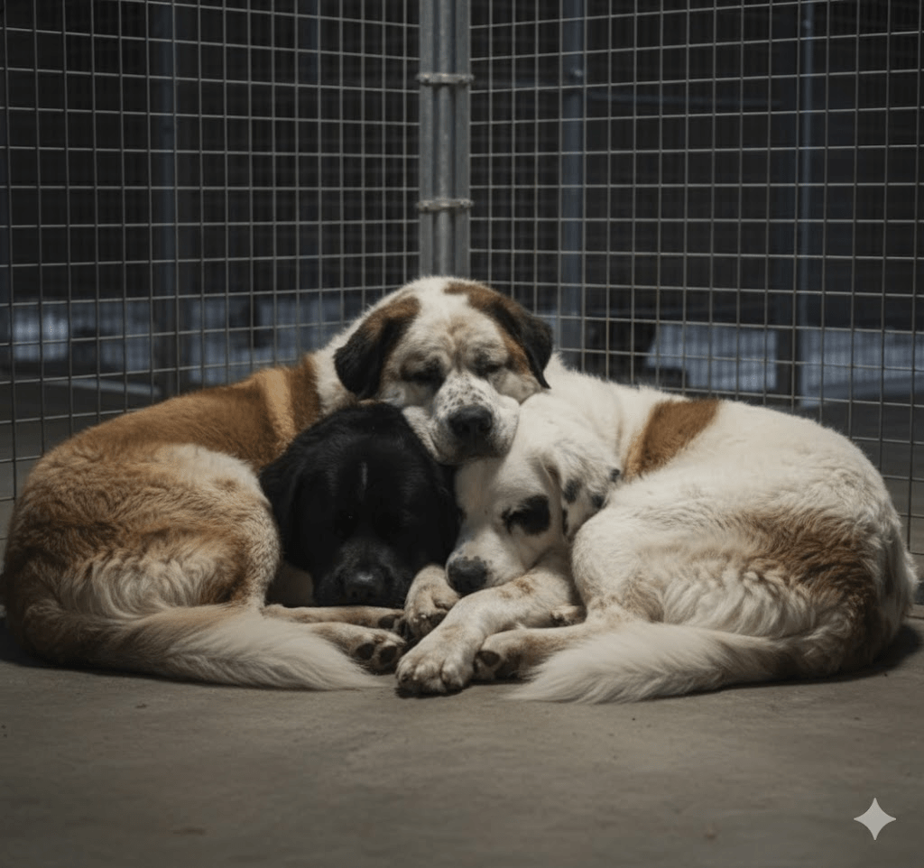 From the moment they arrived at the bustling city shelter, it was clear that these three dogs were different. They moved as one, a singular entity of fur and silent communication. Staff members, accustomed to the myriad personalities that passed through their doors, were struck by the intensity of their connection. They ate from the same oversized bowl, their muzzles gently nudging each other aside, sharing every morsel with an unspoken understanding. When it was time to sleep, they curled into an inseparable tangle, a protective fortress against the cold, hard reality of their temporary home. This wasn’t mere friendship; it was an ingrained, primal bond that spoke of shared hardship and an absolute reliance on one another. The shelter, a beacon of hope for so many, became a stage for their quiet, powerful drama.