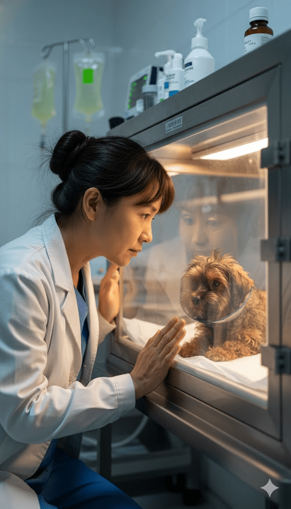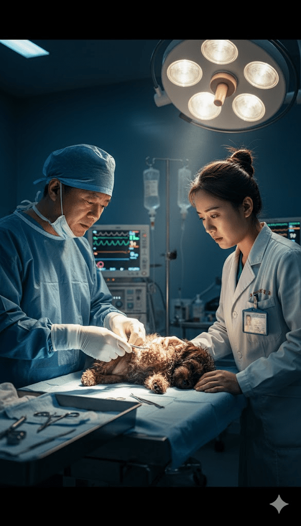 With the dog cradled gently in her arms, Liu Li rushed him to Dr. Chen, a veterinarian known for his unwavering dedication to animals and his uncanny ability to perform miracles. Dr. Chen, a man whose gentle demeanor belied his sharp medical mind, examined the trembling dog. His face, usually a mask of calm professionalism, tightened with concern as he meticulously assessed the extent of the injuries. “He’s been through a lot, Sister Liu Li,” Dr. Chen murmured, his voice laced with sadness. “These aren’t just accidental injuries; this looks like prolonged abuse.” The revelation sent a chill down Liu Li’s spine. This was more than a rescue; it was a case that demanded justice. The medical team worked tirelessly through the night, stabilizing the dog, who they affectionately named “Courage.” He underwent emergency surgery for his internal injuries and had several fractures splinted. The road to recovery would be long and arduous, requiring constant care and specialized treatment.