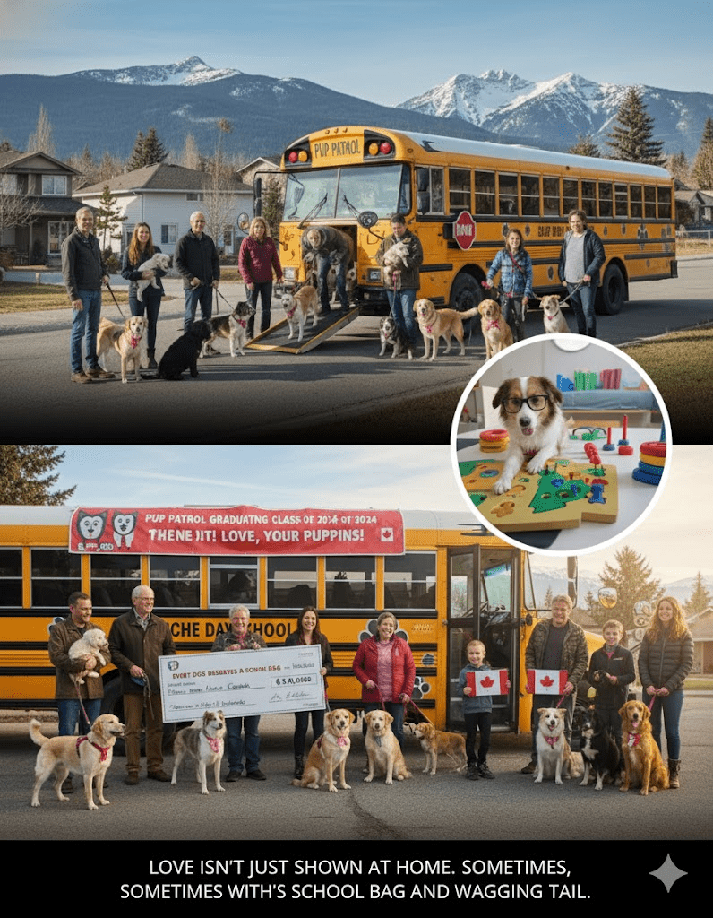 The crisp morning air in a quiet Canadian suburb was usually punctuated by the chirping of birds and the distant hum of traffic. But on one particular Tuesday, a new sound began to ripple through the neighborhood: the unmistakable, joyous barks of dozens of dogs. It wasn’t a dog park gathering or a neighborhood watch patrol; it was the arrival of the “Pup Patrol” school bus, painted a cheerful yellow and adorned with cartoon paw prints.
