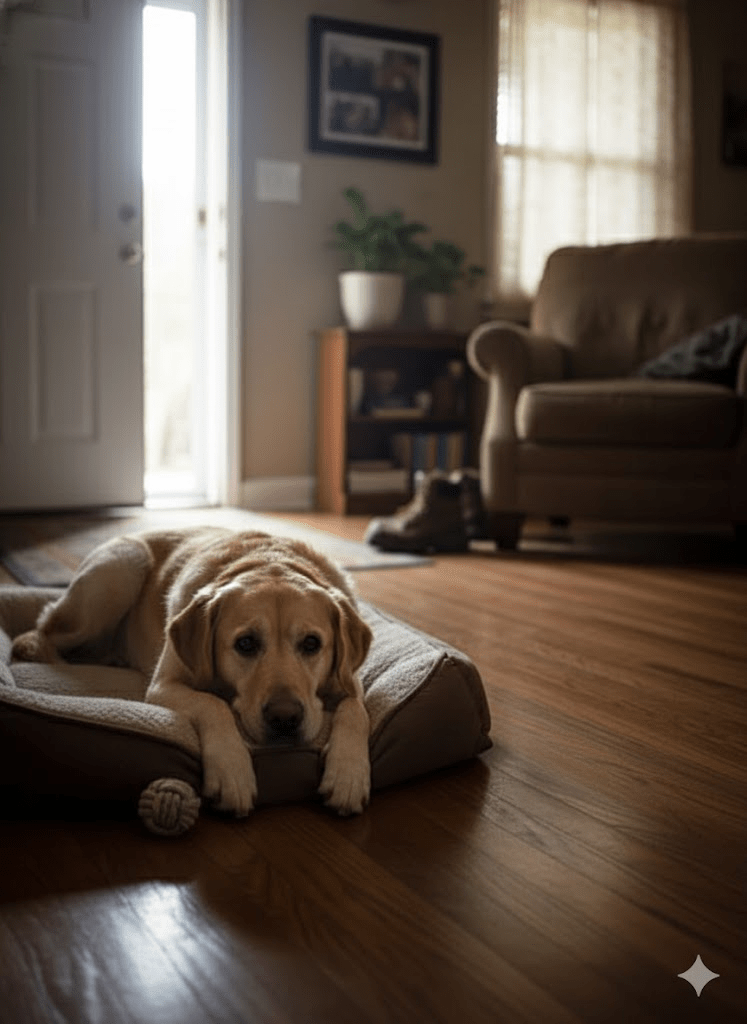 For days, Buddy’s quiet vigil continued at home, a profound sadness settling in his expressive eyes. He paced, he whined softly at the front door, his paw scratching at the place where Arthur would usually grab his leash for their morning walk. The household noticed the change: the playful, energetic dog had become a somber shadow, refusing even his favorite treats, his gaze fixed on the empty spot on the couch where Arthur would often read. His distress was palpable, an emotional echo of the turmoil gripping Arthur in his hospital bed.