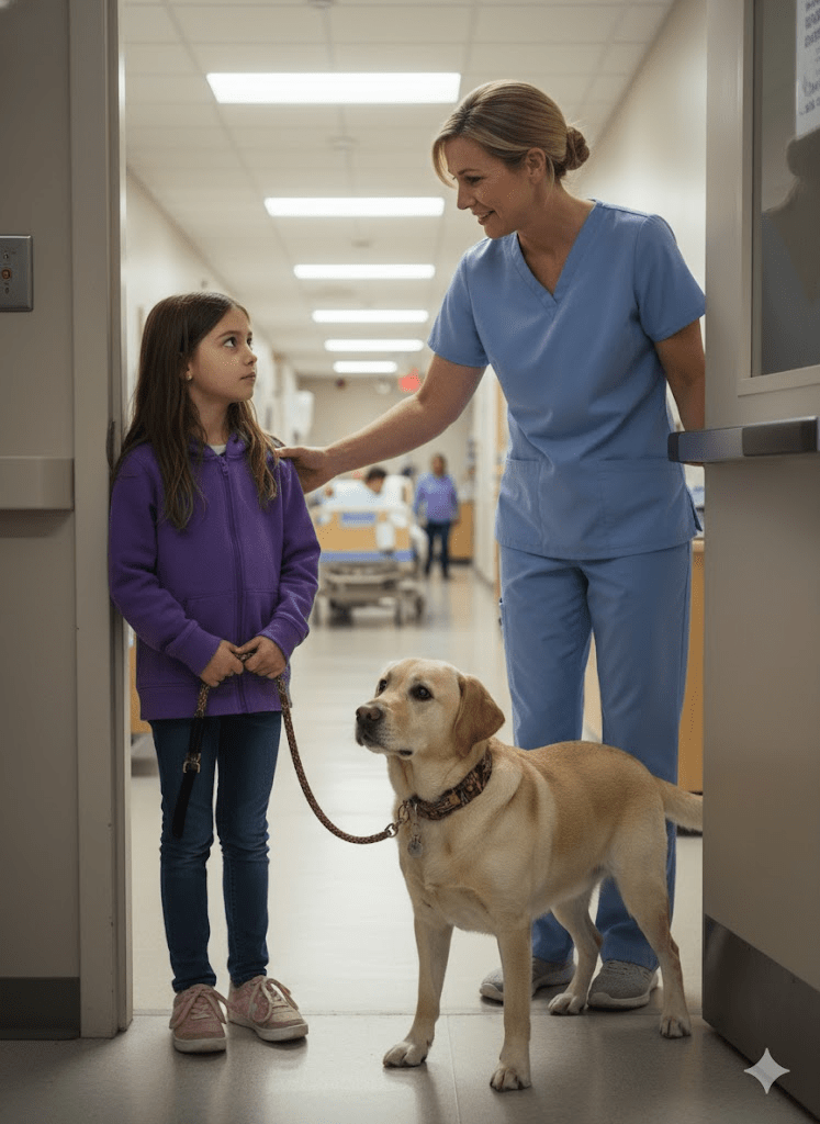 It was Arthur’s youngest daughter, a fiercely determined nine-year-old, who first proposed the unthinkable. “Buddy needs to see Daddy,” she declared to a room of weary adults, her voice unwavering. “He’ll make him better.” Initially, the idea was dismissed as childish fantasy, a sweet but impractical notion in the face of strict hospital regulations. Yet, as Arthur’s condition showed no significant improvement, a desperate plea from his family, combined with an sympathetic nurse, led to an unprecedented decision: Buddy would be allowed a short, supervised visit.
