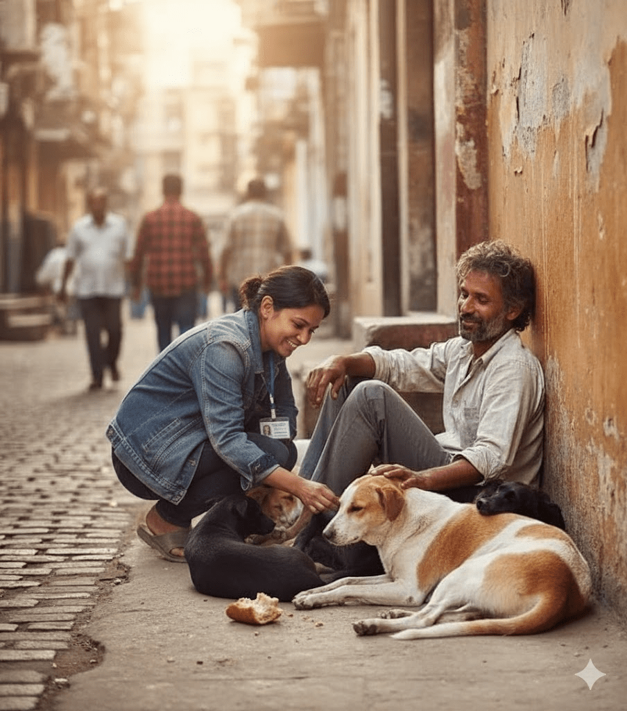 In the bustling heart of what many assumed was an indifferent metropolis, a silent drama unfolded daily, largely unnoticed. Away from the gleaming towers and hurried footsteps, nestled against a weathered, ochre wall, lay a man named Kael. His only possessions seemed to be the tattered blanket beneath him and the unwavering loyalty of a pack of stray dogs. They were his shadows, his warmth, his family. Each dog, with its own story etched in scars and hopeful eyes, had found solace and sustenance in Kael’s quiet companionship. He shared his meager findings, his scraps of bread, and the limited space on his blanket, embodying a generosity that belied his apparent destitution. For Kael, these creatures were not just animals; they were sentient beings whose love was as palpable as the biting wind, a love he believed was the purest form of giving. He lived by a simple creed: “The meek shall inherit the Earth,” finding in his canine companions the very embodiment of that gentle power. This belief was a quiet strength that sustained him, even as the world around him rushed past, oblivious to the profound connection thriving in their midst.