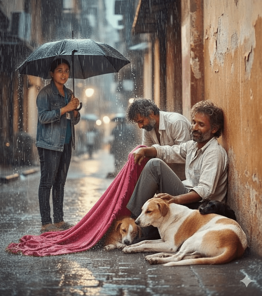 What truly shocked Maya was not Kael’s situation, but the sheer devotion of the animals. One evening, as a sudden, torrential downpour lashed the streets, Maya returned to offer Kael shelter. She found him not huddling under an awning, but meticulously arranging his tattered blanket to shield his dogs from the worst of the rain, himself completely exposed. His priority was unequivocally his pack’s comfort over his own. It was a raw, undeniable display of unconditional love, a silent vow exchanged between a man and his loyal companions, reinforcing Maya’s growing understanding of their unique bond.
