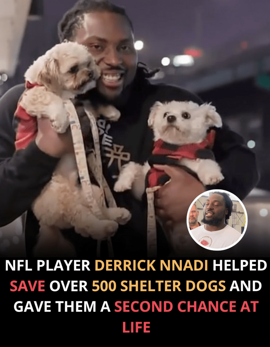 The roar of the crowd, the blinding stadium lights, the crushing responsibility of a Super Bowl ring—these were the defining pressures on Derrick Nnadi, a formidable defensive tackle in the National Football League. While millions of fans only saw the brute force and determination he brought to the line of scrimmage, few knew that Nnadi was engaged in a completely different kind of fight off the field, a silent, desperate battle for the lives of 500 vulnerable, forgotten dogs. The world expected him to focus on tackles and sacks; they had no idea his true calling lay in clearing the crowded, bleak kennels of local animal shelters. The twist wasn’t in a sudden, dramatic play, but in a gradual, overwhelming realization that his success on the gridiron could be translated into life-saving power for creatures who had run out of hope. His journey from NFL star to canine savior wasn’t a PR stunt; it was a deeply personal mission sparked by an unexpected encounter that forever shifted his focus from winning games to saving lives. It was this unforeseen detour that became the greatest, most impactful “play” of his career, a story filled with as many unpredictable turns and moments of near-defeat as any championship game.
